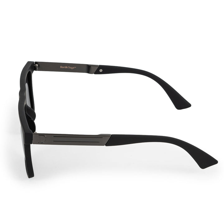 Make a bold statement with the Matte Black Square Full Frame Sunglasses from Bardik Sage. Designed for both men and women, these unisex sunglasses feature a strong square frame and polarized lenses that provide both style and superior eye protection.